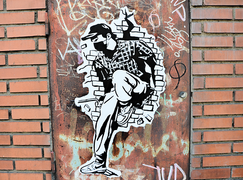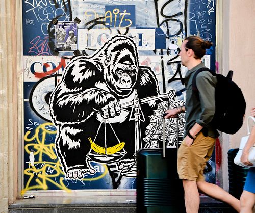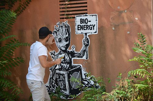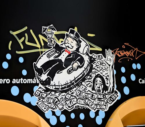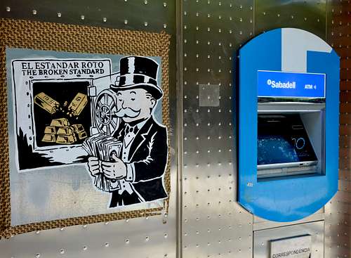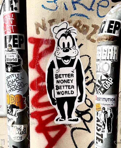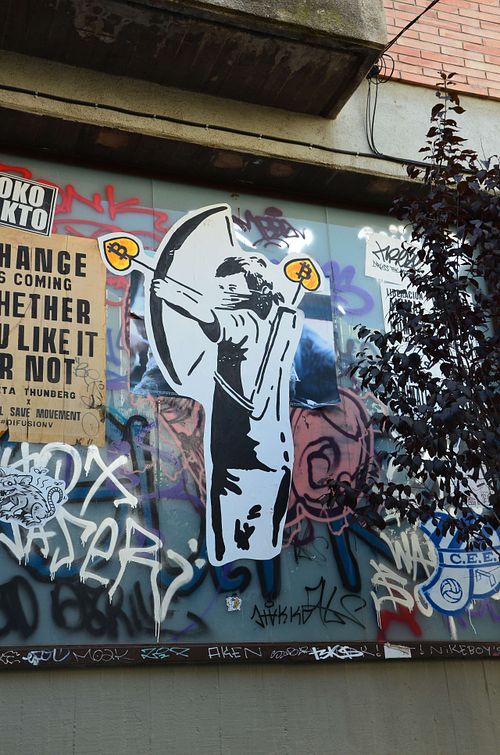 This street art mural presents Bitcoin as a solution to the problems of the current financial system, conveying a message of hope, optimism, and empowerment. The stencil-style figure and the bold lettering add a layer of social commentary, suggesting a rebellious or counter-cultural message. 📍Barcelona