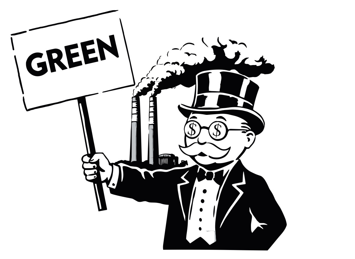 This is the hypocrisy we captured in our piece,"The Greenwashed Banker." The art shows a banker holding a "GREEN" sign while industrial smokestacks billow behind him. It’s a performance. The legacy financial system profits from environmental destruction while using marketing to convince you they are the solution.