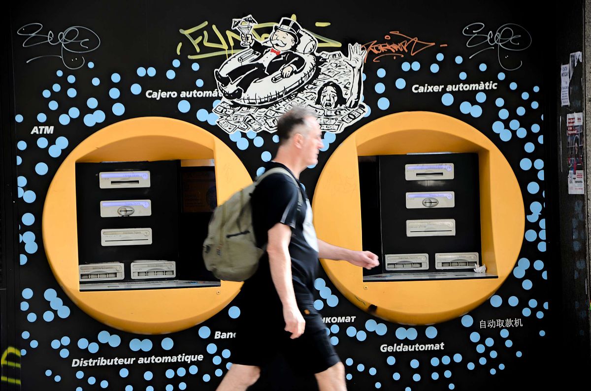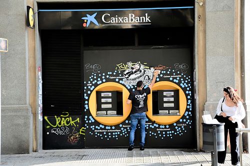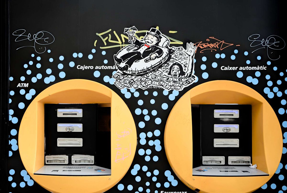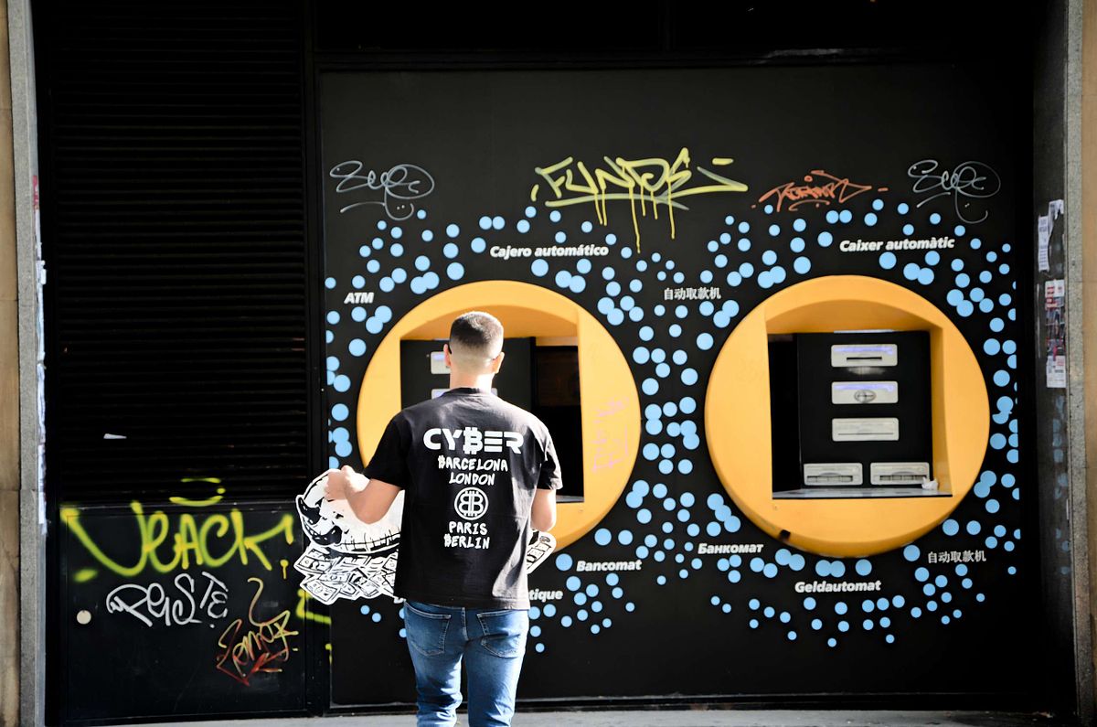 On a sea of paper money, one person floats comfortably while another drowns. This isn't a distant fantasy; it's the daily reality of inflation, and it's the scene depicted in our latest art installation, now live on a CaixaBank wall in Barcelona.