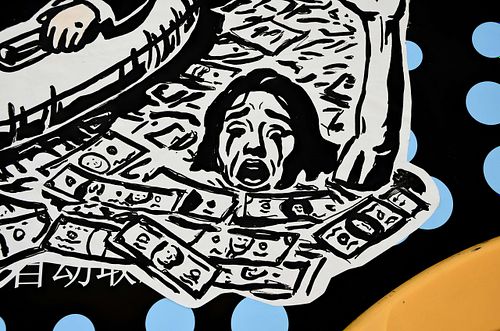This phenomenon is known as the Cantillon Effect. The artwork is a stark depiction of its consequences: a system that systematically benefits the well-connected at the expense of everyone else.